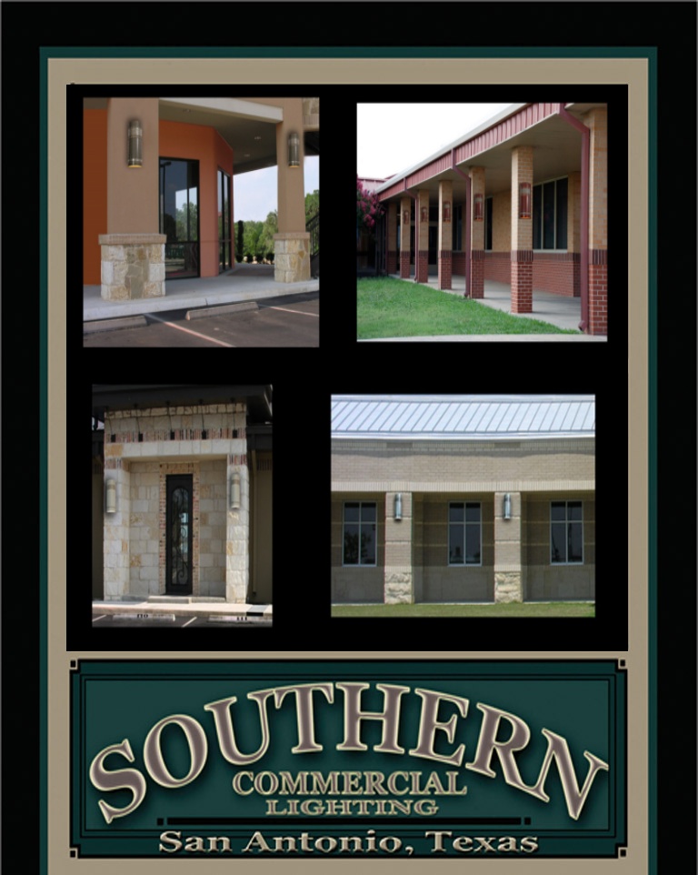It is the aim of Southern Commercial Lighting to provide attractive, durable lighting at reasonable expense. After 35 years of experience in designing and crafting custom lighting, our staff in San Antonio, Texas is now producing long lasting, maintenance free, custom quality, production lighting. Available for both interior and exterior placement with incandescent or fluorescent lamp-up, our lighting fixtures will give you the look of beautiful, up-grade lighting but at standard lighting cost.